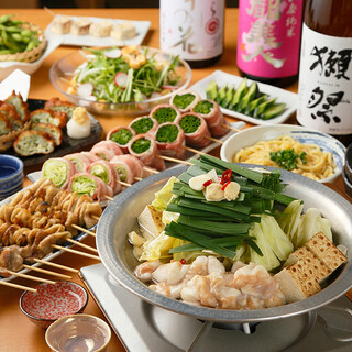 2時間飲み放題付き!博多和牛もつ鍋、胡麻カンパチ、豚バラレタス巻き、大山どりの焼鳥など当店自慢のお料理が全11品